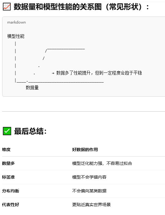 - 数据集的问题问的GPT,需要的自己问吧,总结下来就是越多越好,数据集最好干净又卫生,不然会出现垃圾进垃圾出的情况