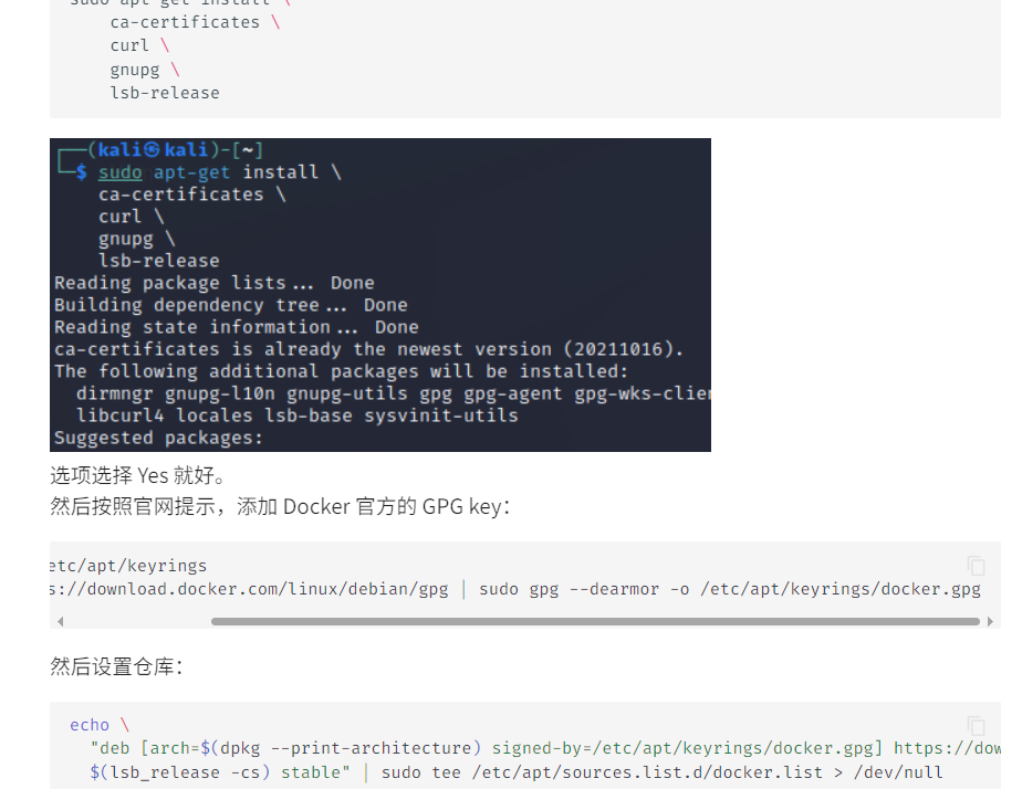 curl -fsSL https://download.docker.com/linux/debian/gpg- 如果这个时候使用sudo apt-key会报未找到指令,kali已对该命令弃用