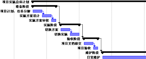我方公司根据对项目实施的要求,结合我方公司多年集成项目的实施经验,整个实施过程可划分为四个阶段:准备阶段、实施阶段、验收阶段、维护阶段。