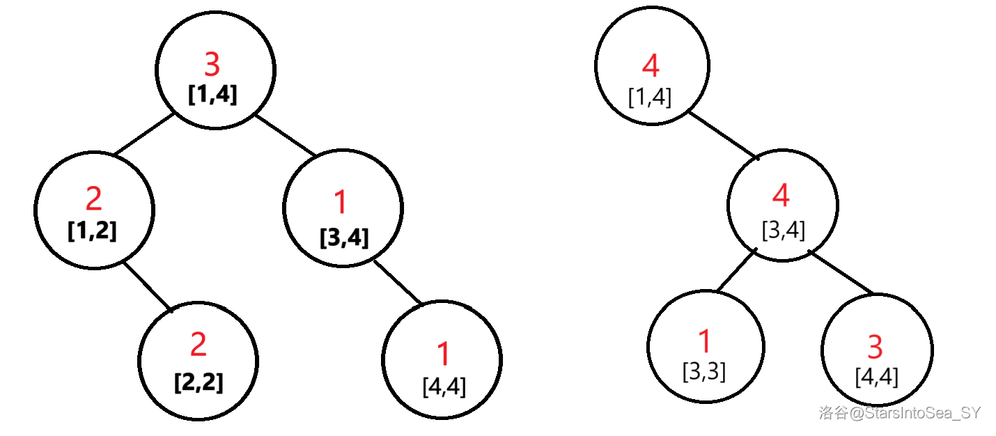 不难看出合并的时间复杂度是两棵线段树的并集大小。