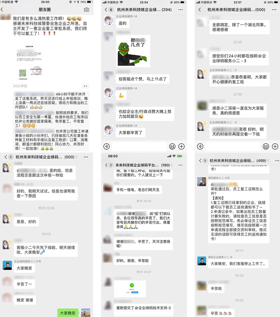 “在家宅了二十多天,一直想我们能做什么。现在终于能为企业的有序复工做一些贡献,宅得值了。”在家办公支持、熬了一个通宵的项目组成员说。