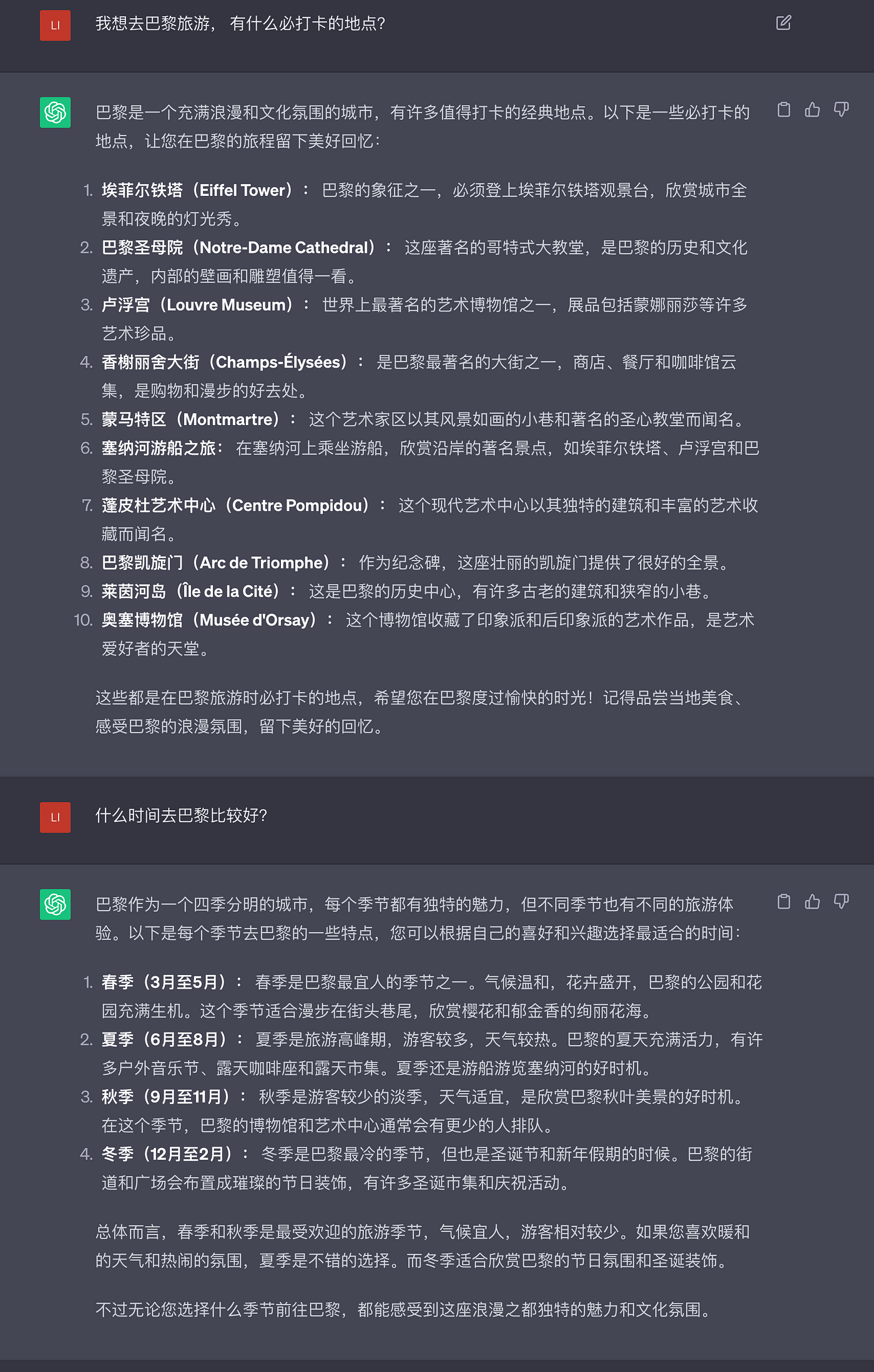 接下来我们来看下面两个查询及其相应的ChatGPT回复:
