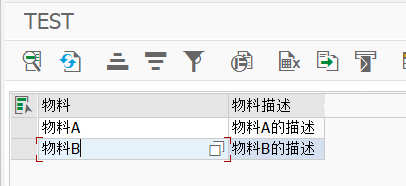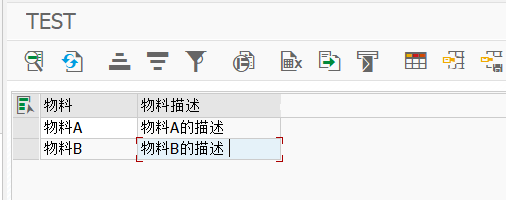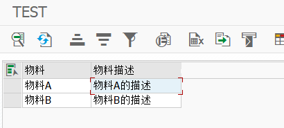 效果:第1行的物料可编辑,物料A的描述不可编辑;第2行的物料不可编辑,物料B的描述可编辑