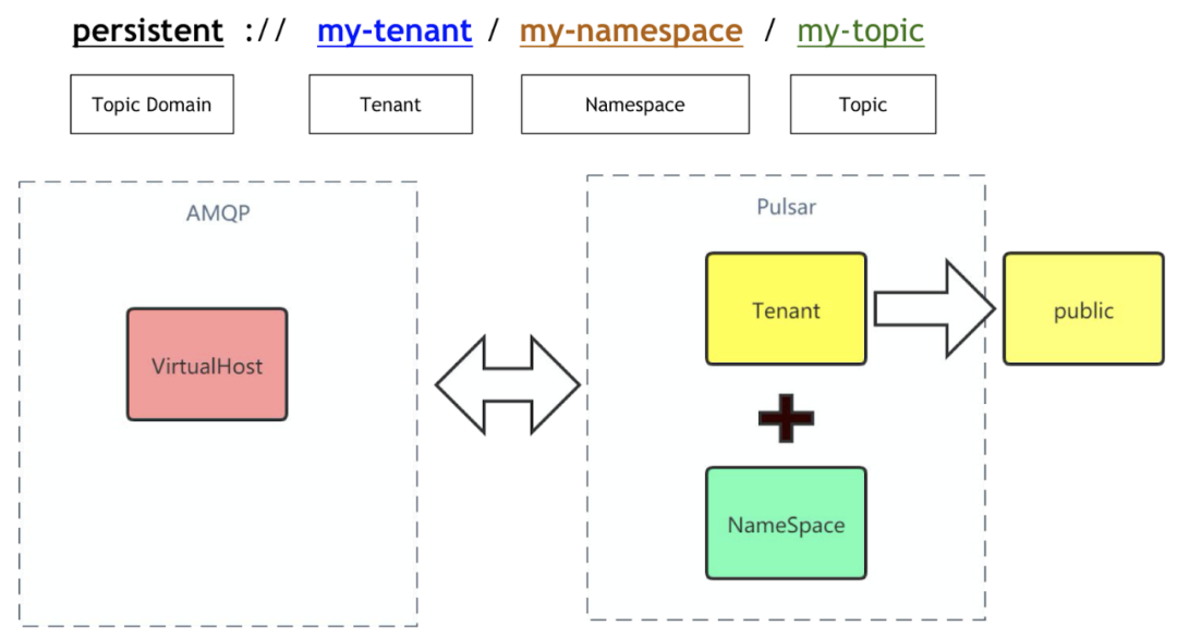 根据 AMQP 协议的定义,队列收到的消息是以轮循方式分配给所有消费者,与 Pulsar Shared 订阅方式吻合。所以在 AoP 的实现中将这种 Shared 订阅方式定义为 default 订阅方式。
