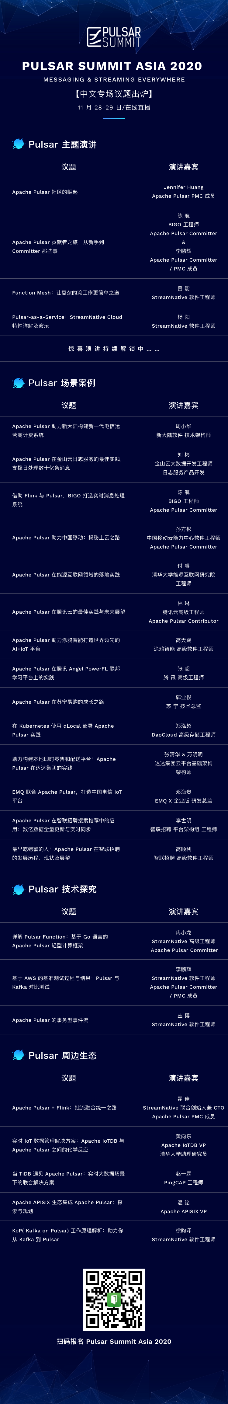Pulsar Summit Asia 2020 中文专场议题出炉!