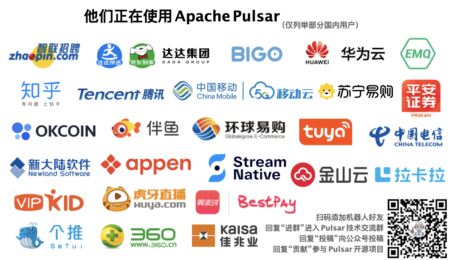 不过,上面的情况都在得到快速改善,目前 Pulsar 也逐渐被越来越多的公司和组织使用,Apache Pulsar 商业支持公司 StreamNative 也推出了 StreamNative Cloud,Apache Pulsar 正在快速成长,我们都可以看到令人欣喜的变化。Confluent 曾发布博客对比 Pulsar 和 Kafka ,但请注意,这些问题可能有偏见。