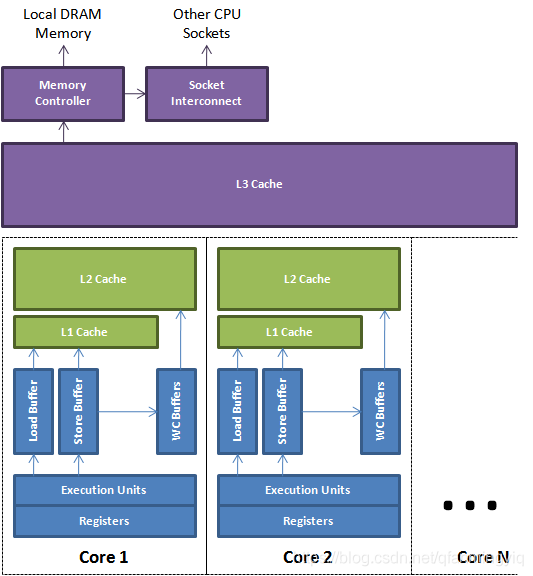 计算机CPU和内存条: 在CPU运行时,CPU处理数据速度远高于从内存条读取速度。为了解决这个问题,在CPU中加人了寄存器和多级缓。在计算时,先将数据读取到寄存器或缓存中,然后再进行计算。但是现代CPU,大部分是多核心设计,每个核心都有自己的缓存。并且各个核心的缓存是彼此隔离的,相互之间无法共享数据。由此,便会产生多个核心共享数据不一致问题。