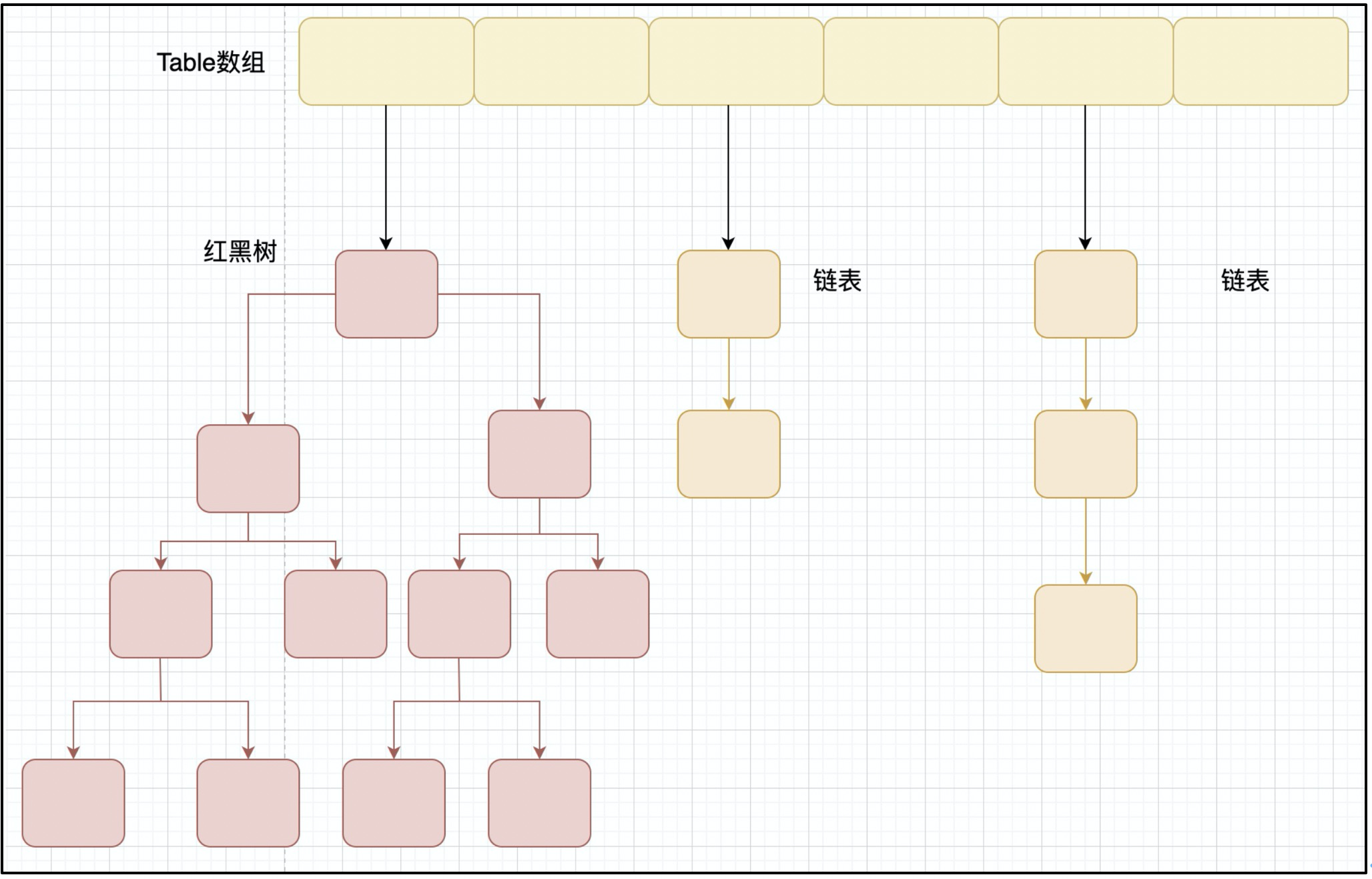 (1)数据结构:数组+链表。JDK1.8 以后的 HashMap 在解决哈希冲突时有了较大的变化,当链表长度大于阈值(默认为 8)(将链表转换成红黑树前会判断,如果当前数组的长度小于 64,那么会选择先进行数组扩容,而不是转换为红黑树)时,将链表转化为红黑树,以减少搜索时间。Hashtable 没有这样的机制。