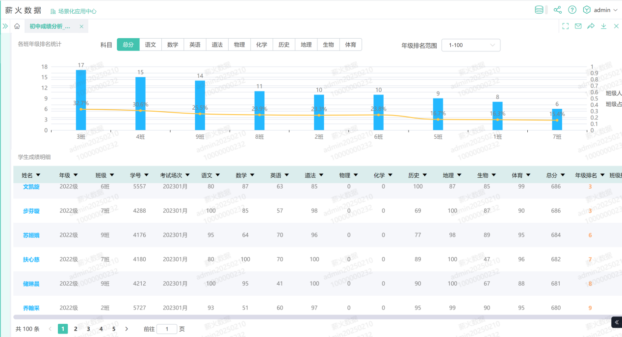 维度四:排名分布与班级明细穿透