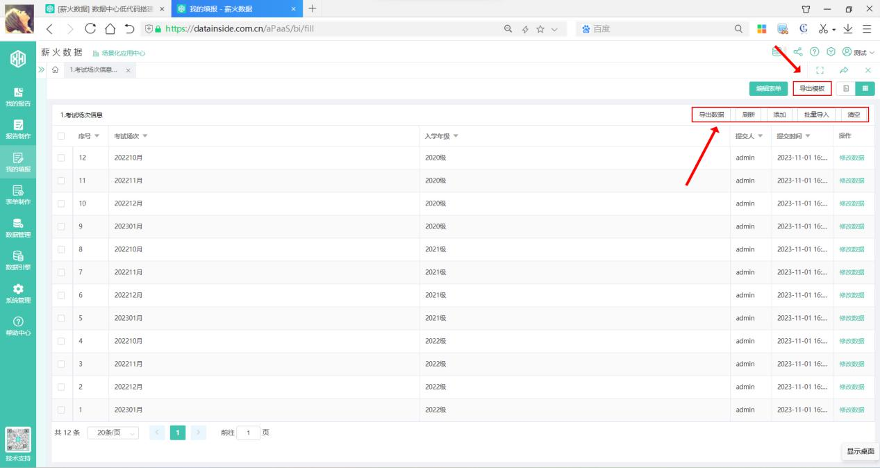 为确保数据准确性,系统预置的模拟数据需在录入真实信息前清空。进入“我的填报>初中考试成绩分析2.0”,切换至“数据模式”,一键清除考试场次、任课老师、学生成绩三大模块的模拟数据。支持导出Excel模板,批量导入更高效!