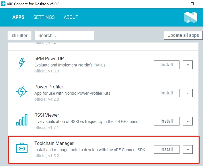 根据自己的需要可以安装自己所需的APP,Programmer是用来烧录程序使用的,要下载SDK还需要安装Toolchain Manager