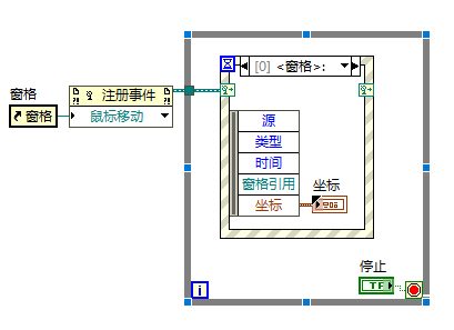 通常情况下,程序极少会只需要处理一个事件。程序总是需要处理运行过程中不断放出的各种事件,所以事件结构通常会被放在一个 while 循环结构内。我们把这种一个事件结构外套一个 while 循环结构的程序模式成为“循环事件结构”