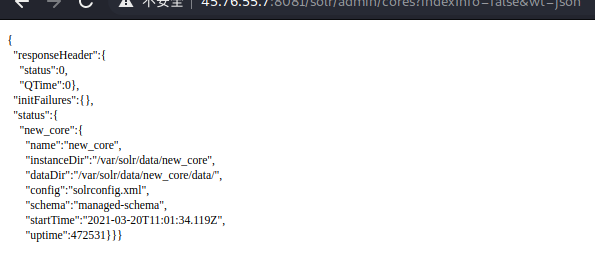 http://IP:port/solr/admin/cores?indexInfo=false&wt=json