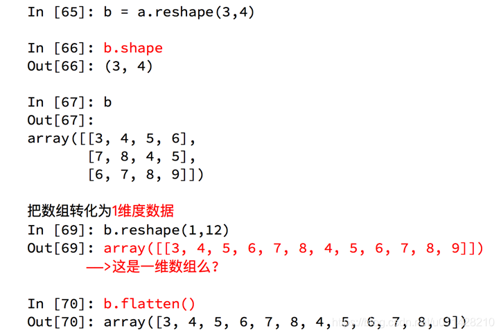 a.reshape(n,):n是数组元素数量,方法实现将数组修改为1维数组时,注意后面需要添加“ , ”