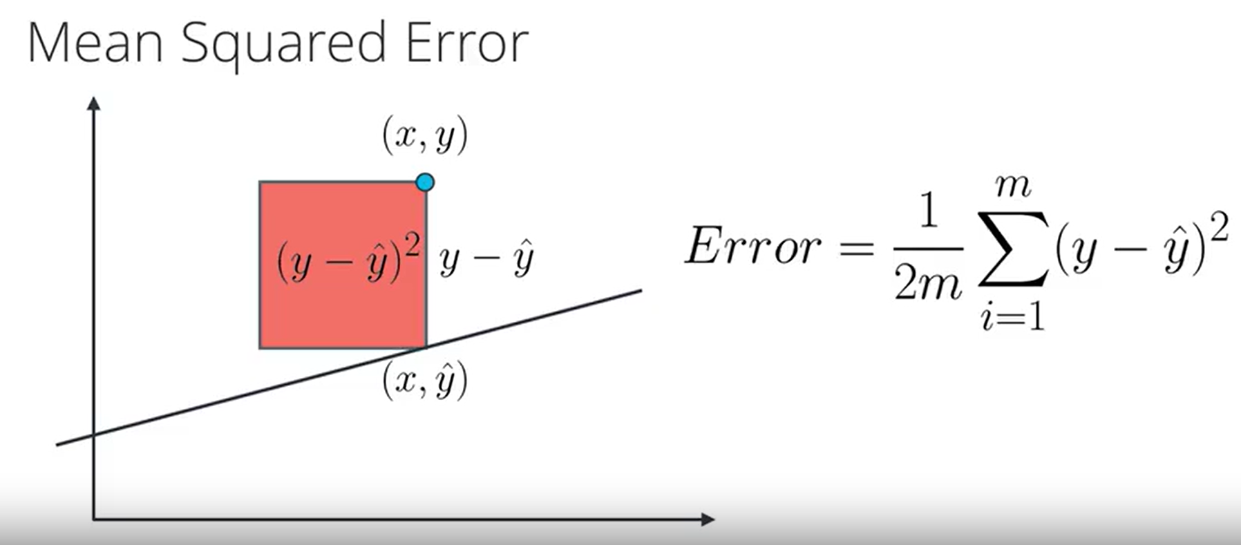 \(J(w, b) = \frac{1}{2m} \sum_{i = 1}^{m} (\hat{y}^{(i)} - y^{(i)})^2 = \frac{1}{2m} \sum_{i = 1}^{m} (f_{w,b}(x^{(i)}) - y^{(i)})^2\)