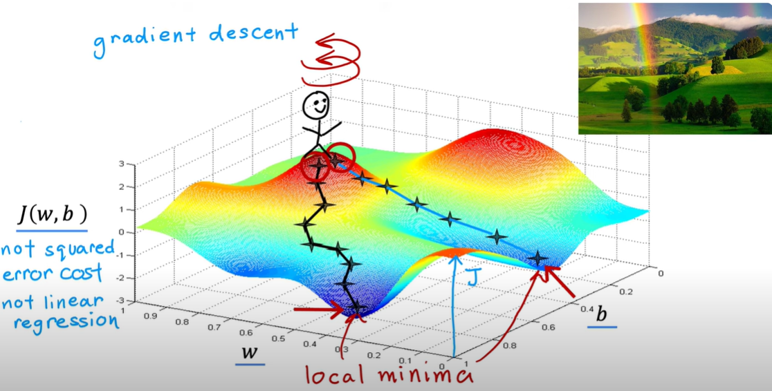 \(b = b - \alpha \left[ \frac{1}{m} \sum_{i = 1}^{m} \frac{1}{2} (f_{\vec{w}, b}(\vec{x}^{(i)}) - y^{(i)}) \right]\)
