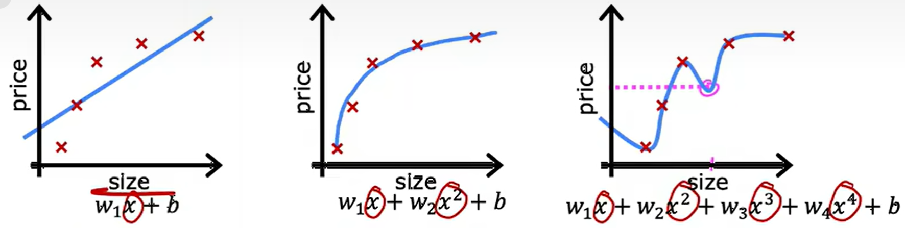 左边“欠拟合”,中间“恰到好处”,右边“过拟合”
