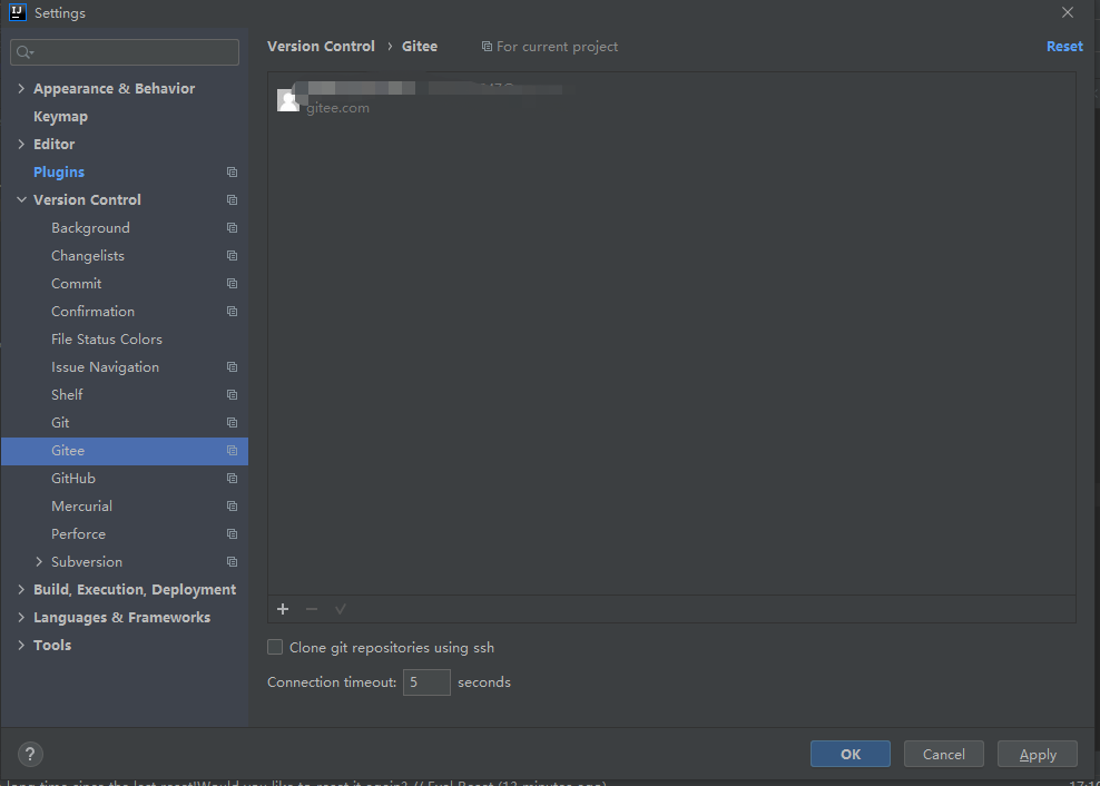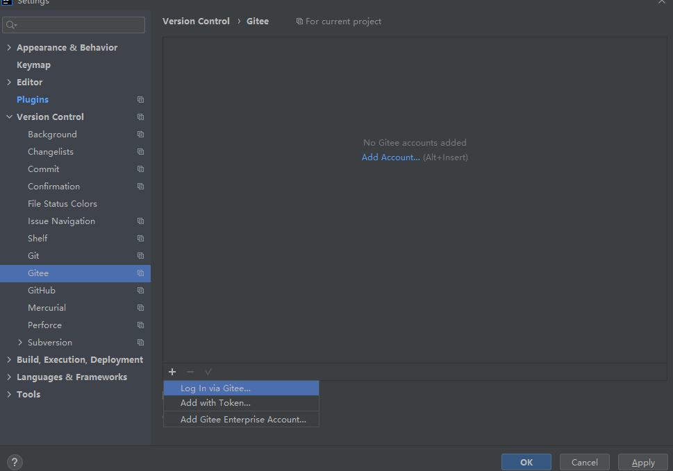- 注意不下插件的话,Version Control 没有gitee的选项