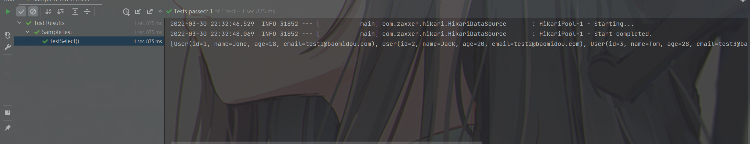 (1, 'Jone', 18, 'test1@baomidou.com'),