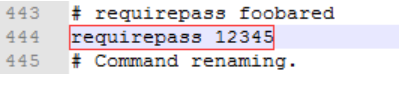 找到含有requirepass字样的地方,在其下面追加一行,输入requirepass 12345并保存。