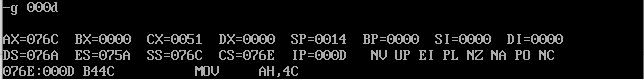 ① 在debug中将执行到line9结束、line11之前,记录此时:寄存器(DS) = _076C_, 寄存器(SS) = _076E_, 寄存器(CS) = _076A_