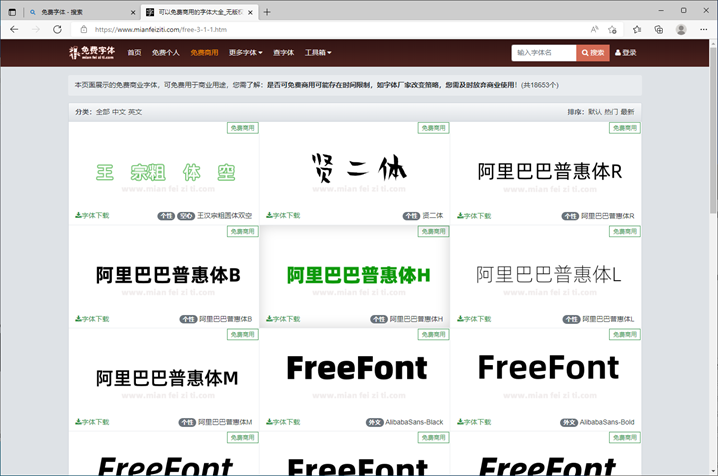 - 最后附赠一下免费的商用字体,包括质量较好的 阿里巴巴普惠体、站酷高端黑等等,链接如下:免费字体网 (mianfeiziti.com)