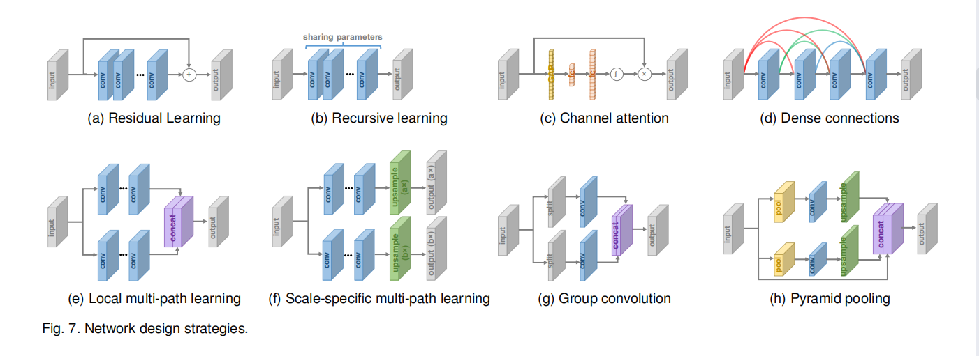 区别、创新点处:一般来说,使用深度学习技术的SR算法家族在以下几个主要方面有所不同:不同类型的网络架构、不同类型的损失函数、不同类型的学习原则和策略。