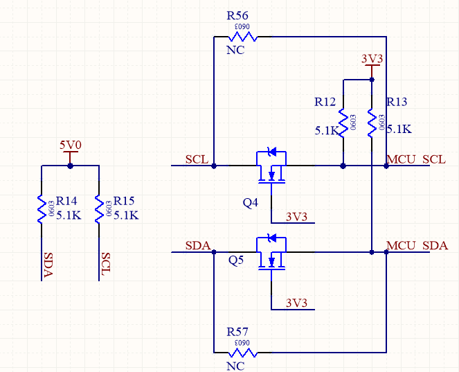 HDC1080 是一款德州仪器的温湿度测量芯片,采用I2C通信,本文供电5V,故设计上拉同时设置了电平转换3.3V电路