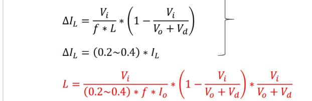 纹波电流要求:ΔILmax=0.4IL ΔILmin=0.2IL 即纹波电流在电感平均电流(IL)的20%至40%