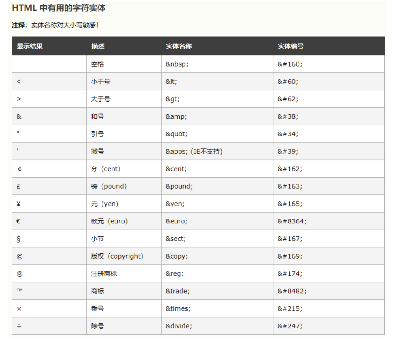 于是下面HTML代码的显示效果是:
