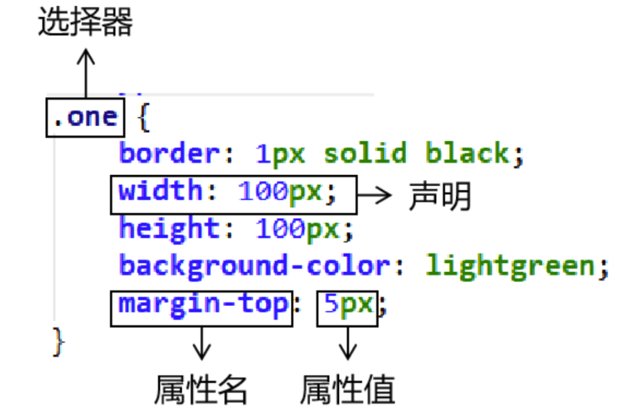 CSS样式由选择器和声明组成,而声明又由属性和值组成。
