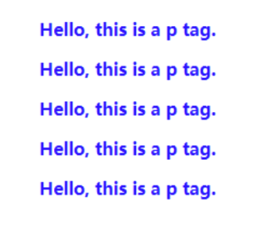 <p>Hello, this is a p tag.</p> <p>Hello, this is a p tag.</p> <p>Hello, this is a p tag.</p> <p>Hello, this is a p tag.</p> <p>Hello, this is a p tag.</p>