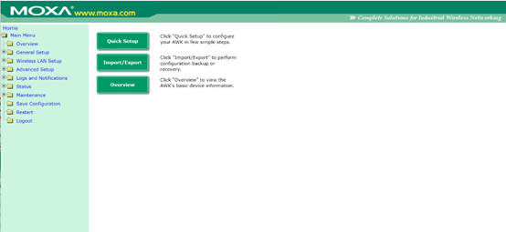 d、回车后看到左侧菜单画面,表示连接AWK 成功且进入配置页面: