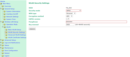 三、加密方式:进入WLAN Security Settings 配置菜单,选择对应的加密方式并填入key 密