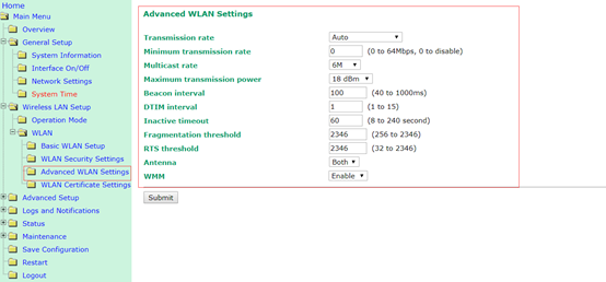 进入web 配置页面的wireless settings -> Advanced wireless settings 菜单页面