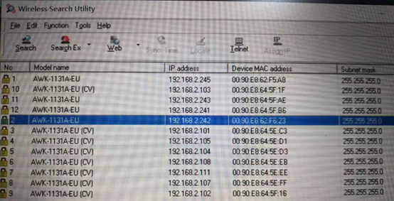 1、使用专业软件(Wireless Search Utility),搜索出对应的AP IP地址: