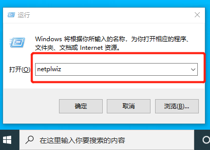 +R键调出运行窗口,输入:输入netplwiz回车或者点击确定,如下图所示