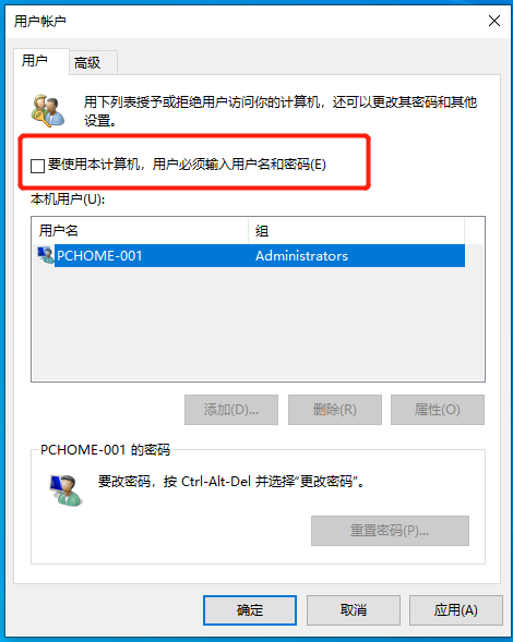 2、进入用户账号界面,可以看到,要使用此计算机,必须输入用户密码,默认勾选的,如下图所示