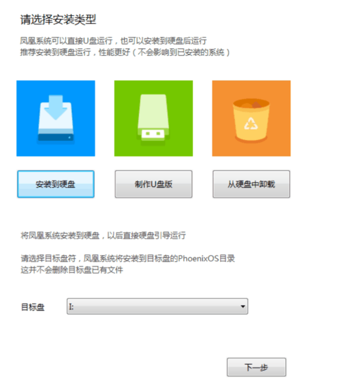 选择手动安装,安装到硬盘,目标盘符选择要安装到的硬盘盘符