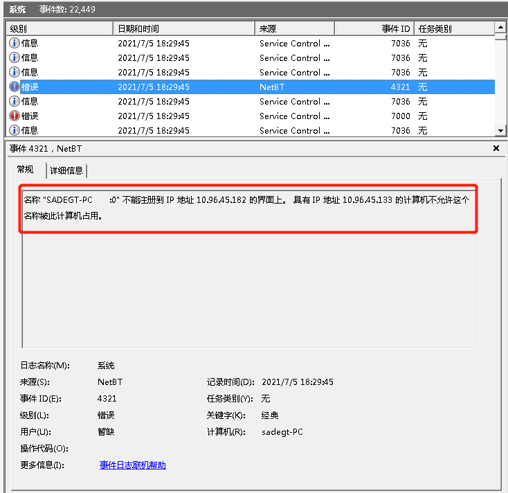 6、根据报错发现自动关机这台计算机和局域网中的另一台计算机名字重复,尝试分别更改2台计算机的名字,并重启计算机,问题解决。