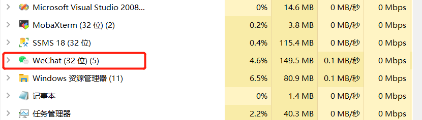 3、然后在打开的任务管理器窗口中可以看到微信的程序正在运行。
