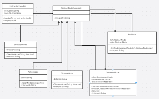 //本实例采用栈的方式来处理指令,如果遇到“and”,则将其后的三个单词作为三个终结符表达式连成一个简单句子SentenceNode作为“and”的右表达式,而将从栈顶弹出的表达式作为“and”的左表达式,最后将新的“and”表达式压入栈中。