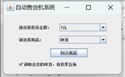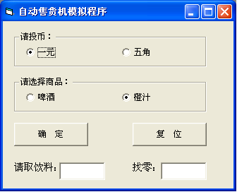 一元硬币1,五角硬币2;啤酒按钮1,橙汁按钮2 |