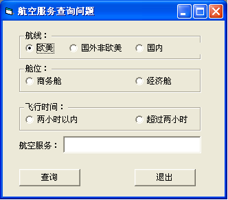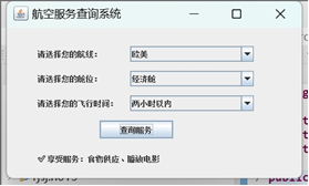 4、航空服务查询问题:根据航线,仓位,飞行时间查询航空服务。