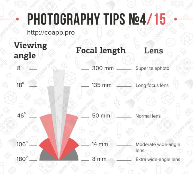 镜头的焦距越长,视角就越窄,反之亦然。例如300mm的超远摄镜头,只有8°的视角,而8mm的超广角镜头,则拥有180°的视角。