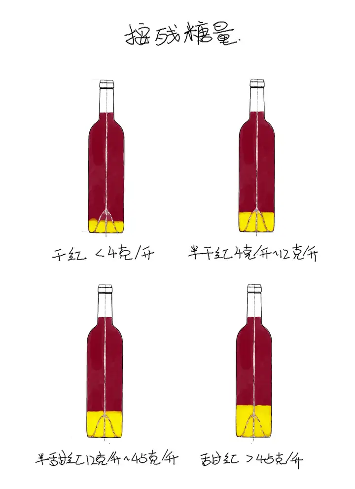 “干”就是不甜的意思,"干红"是每升残糖量不超过4克的红酒。