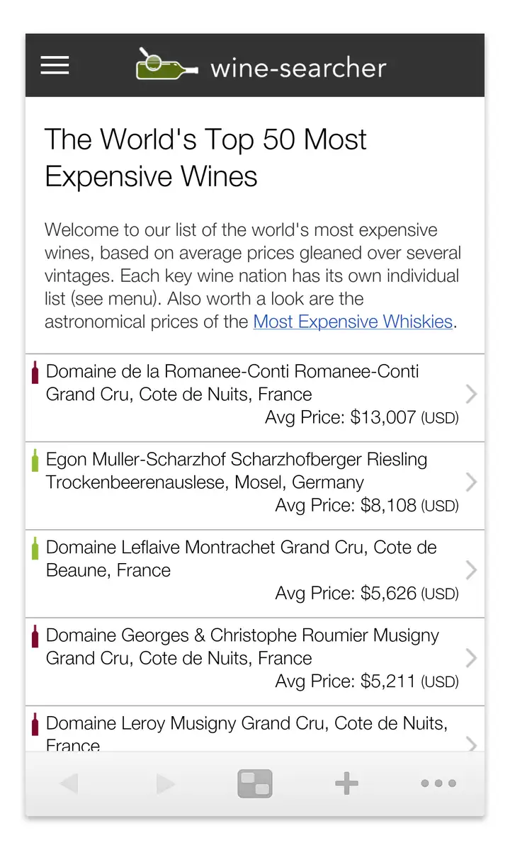 其实不是的,根据 Wine-Searcher 从全球868万款葡萄酒的价格做出的统计看,全球最贵的50款葡萄酒里,“五大名庄”一款也木有……