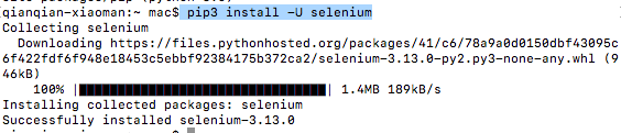 再输入安装selenium的命令,即可成功。