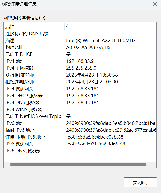 - 获取无线局域网适配器WLAN中的IPv4地址: